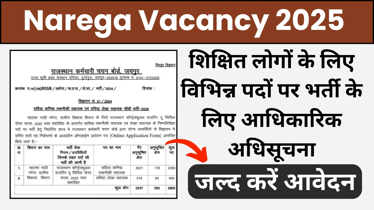 Rajasthan NREGA Vacancy: राजस्थान नरेगा भर्ती के लिए सूचना जारी, कुल पद 2600, जल्द करें आवेदन