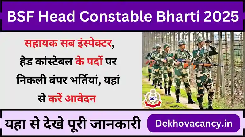 BSF Head Constable Bharti 2025: महानिदेशालय सीमा सुरक्षा बल द्वारा सहायक सब इंस्पेक्टर का हेड कांस्टेबल…